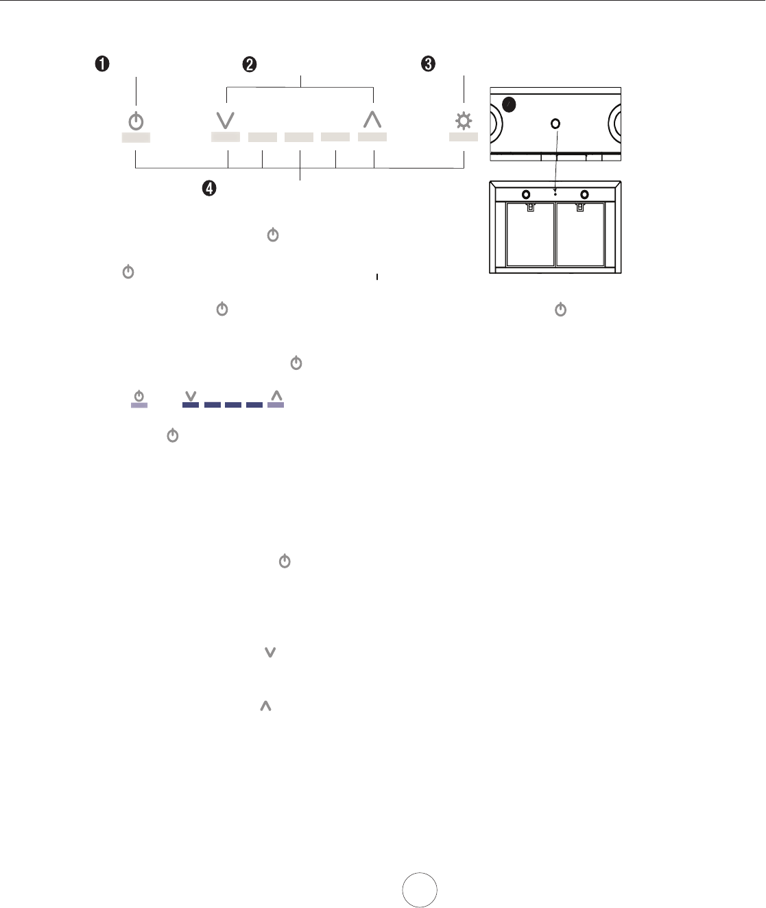 - Press this button to decrease fan speed. 5, 4, 3, 2, 1.