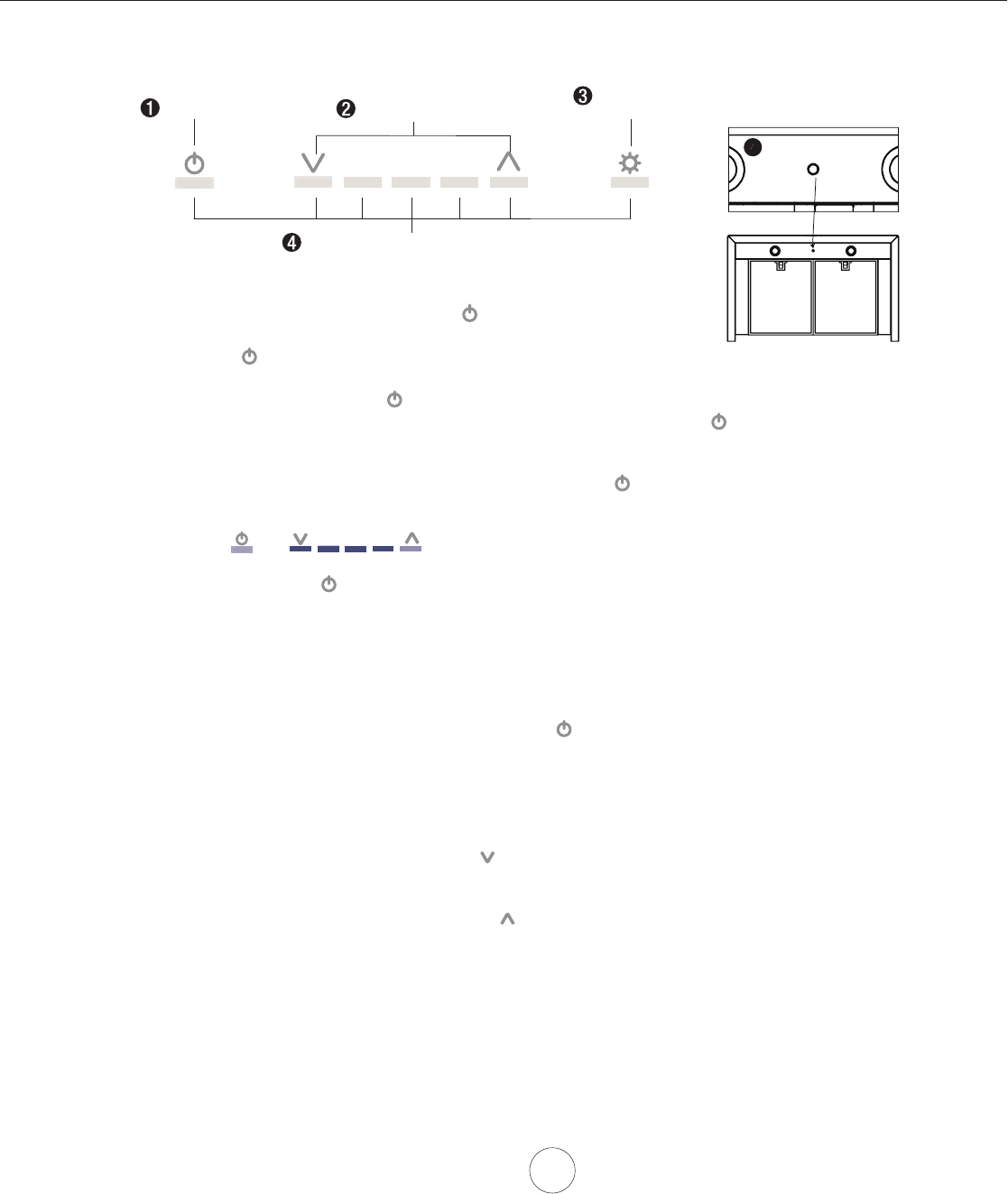 - Appuyez sur cette touche pour réduire la vitesse du ventilateur. 5, 4, 3, 2, 1.
