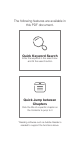 The following features are available in this PDF document. Quick Keyword Search Enter the keyword in the search box and hit the search button Quick Jump between Chapters Click the title of a specific chapter on the Contents to jump to it *Reading software such as Adobe Reader is needed to support the functions above.