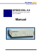 SPEED-DSL 4.6 CAUTION Pan Dacom Direkt GmbH strongly recommends the use of proper electrostatic discharge (ESD) precautions when handling this equipment. 1. Installation 1.1. Unpack and Inspect the Equipment The following components should be included: 1 SPEED-DSL 4.6 or SPEED-DSL 4.6G 1 power supply 1.2. Power Up the SPEED-DSL 4.6 Plug the power supply into the back of the SPEED-DSL 4.6 and connect it to the power source. Verify that the Power LED on the front of the SPEED-DSL 4.6 is illuminated.