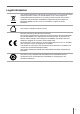 Legal Information This symbol indicates that, at the end of your product’s life, it must not be discarded as domestic waste. Instead, you should dispose of your used equipment at a designated collection point for the recycling of waste electrical and electronic equipment. Ref: EU Directive 2002/96/EC on Waste Electrical and Electronic Equipment (WEEE). Please contact your distributor / supplier for further information. This product is suitable for indoor use only.