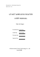 Document No.: UM- Wireless Router-001 Version No.: V1.0 UT-NET WIRELESS ROUTER USER MANUAL Total 14 Pages Formulated by: Yang Xing Audited by: Ren Chong Reviewed by: Approved by: Zhuhai Unitech Power Technology Co., Ltd.
