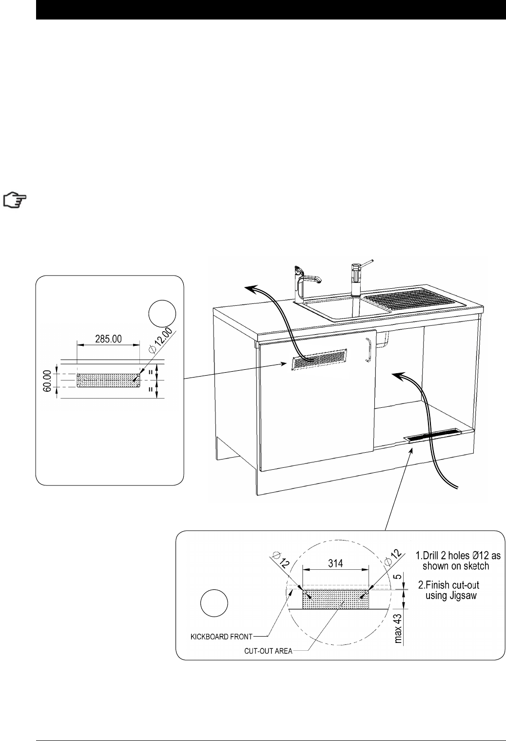 and expelled through the top of the cupboard. Therefore placement of the outlet vent should be towards the