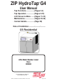 ZIP HydroTap G4 ® User Manual • • • • • Tap Functions..................(Pages 2-4) Tap Operation..................(Pages 5-10) LCD Screen & Menu .......(Pages 11-22) Maintenance.................... (Pages 23-26) Contact details.................(Page 28) Date of Installation............./........../........... CS Residential Affix Model Number Label Here 802269 For safe keeping store this book in the inside door pocket 802269 - Residential CS & CSHA User Manual - 09.2016 v3.
