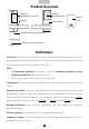 English Product Overview Keypad & Card Detection Area Battery Compartments Handle Reset Button Battery Cover Mechanical Key Hole (hidden) Emergency Power Interface Definitions User Roles: The lock is designed for two user roles namely Administrator and User. The Administrator group has the permission to enter the menu and open the door, but the User group has permission to open the door only. Note: 1) The maximum capacity of all groups is 100.