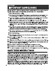 BEFORE USE IMPORTANT SAFEGUARDS Be sure to follow the instructions. © These WARNINGS and CAUTIONS are intended to protect you and others from personal injury and household damage. To ensure safe operation, please follow carefully. WARNING Indicates risk of serious injury. 1 A CAUTIONS A Indicates a waning or caution. A specific caution is indicated inside or near the triangle by sentences or illustrations. /N\CAUTIONS Indicates risk of injury or property damage if mishandled.