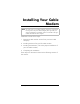 Installing Your Cable Modem Note: In some cases, your cable company will use its own installation process. If your cable company does provide you with an installation procedure, follow it instead of the procedure described in this chapter. Installation consists of four steps: 1. Requesting cable modem service from your local cable company. 2. Installing the drivers for your PCI cable modem. 3. Installing the hardware. (This is the physical installation of your PCI cable modem.) 4.
