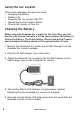 Using the Car Locator This section addresses five primary areas: • Charging the Battery • Battery Life • Powering the Car Locator ON/ OFF • Monitoring the Car Locator Status • Placing the Locator In Your Car Charging the Battery Before using the Zoombak Car Locator for the first time, you will need to fully charge the battery. Follow these simple instructions to charge the battery. The initial battery charge time will be 6 hours; each subsequent battery charge will be approximately 4 hours. 1.