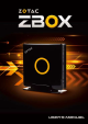 ZOTAC ZBOX ZOTAC ZBOX User’s Manual No part of this manual, including the products and software described in it, may be reproduced, transmitted, transcribed, stored in a retrieval system, or translated into any language in any form or by any means,except documentation kept by the purchaser for backup purposes, without the express written permission of ZOTAC.