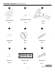 ADITAMENTOS (se muestran en tamaño real) AA CC BB Placa de montaje Tornillo de la placa de montaje Bisagra Cant. 4 Cant. 8 Cant. 4 DD EE FF Tornillo para bisagra Perilla Tornillo para perilla Cant. 8 Cant. 2 Cant. 2 GG HH II Tapa de tornillo Tope de goma Tornillo grande Cant. 24 Cant. 4 Cant.