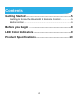 Contents Getting Started .........................................................5 Getting to Know the Bluetooth 3 Remote Control ............... 5 Button Action ..................................................................... 6 Before you begin … .................................................8 LED Color Indicators ...............................................9 Product Specifications ..........................................
