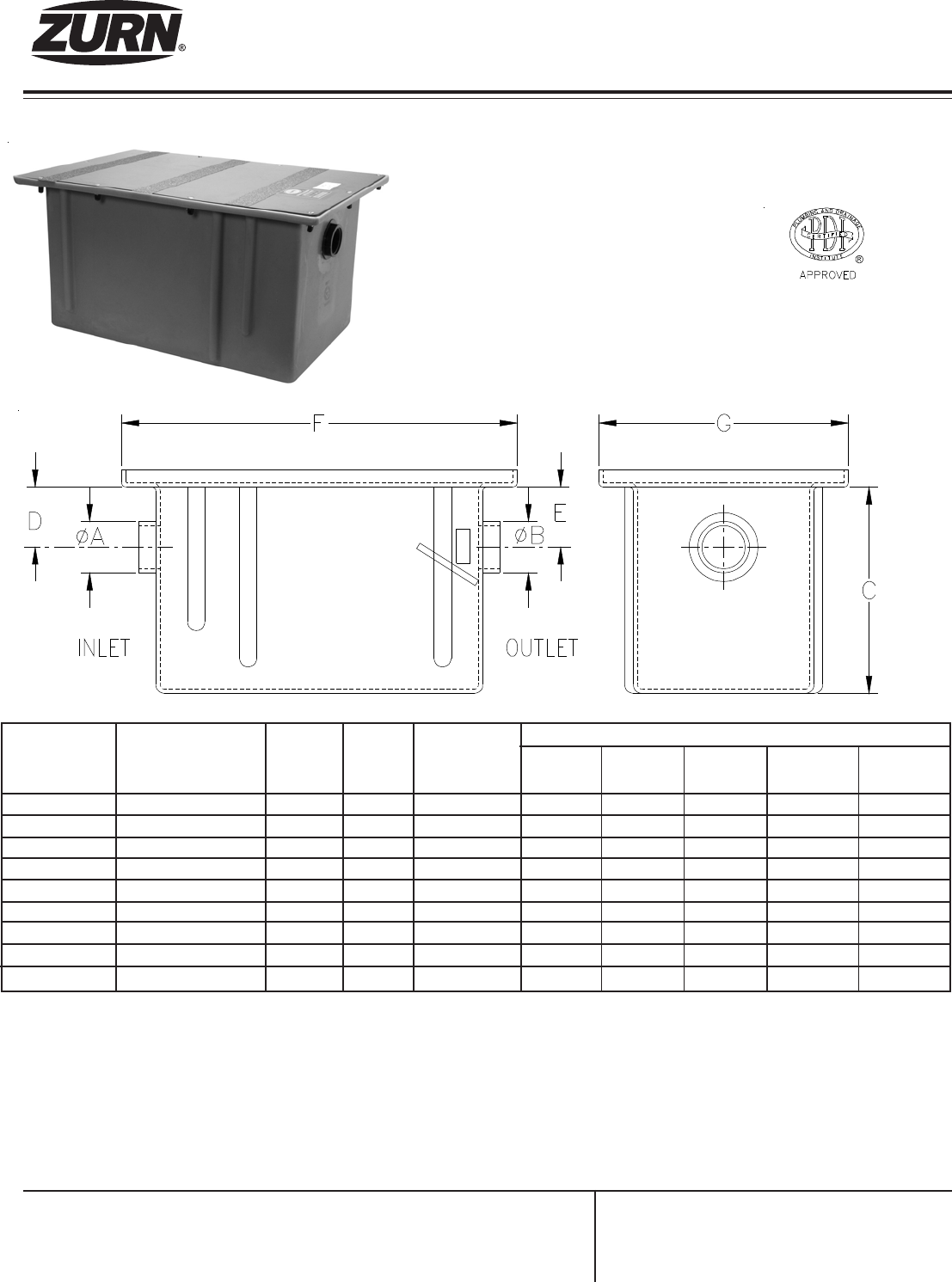 structed of non-corrosive polyethelene, the interceptor handles continuous temperatures to 212° F. Trap is furnished with NPT