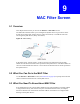 This chapter discusses how you can use the Wireless > MAC Filter screen.