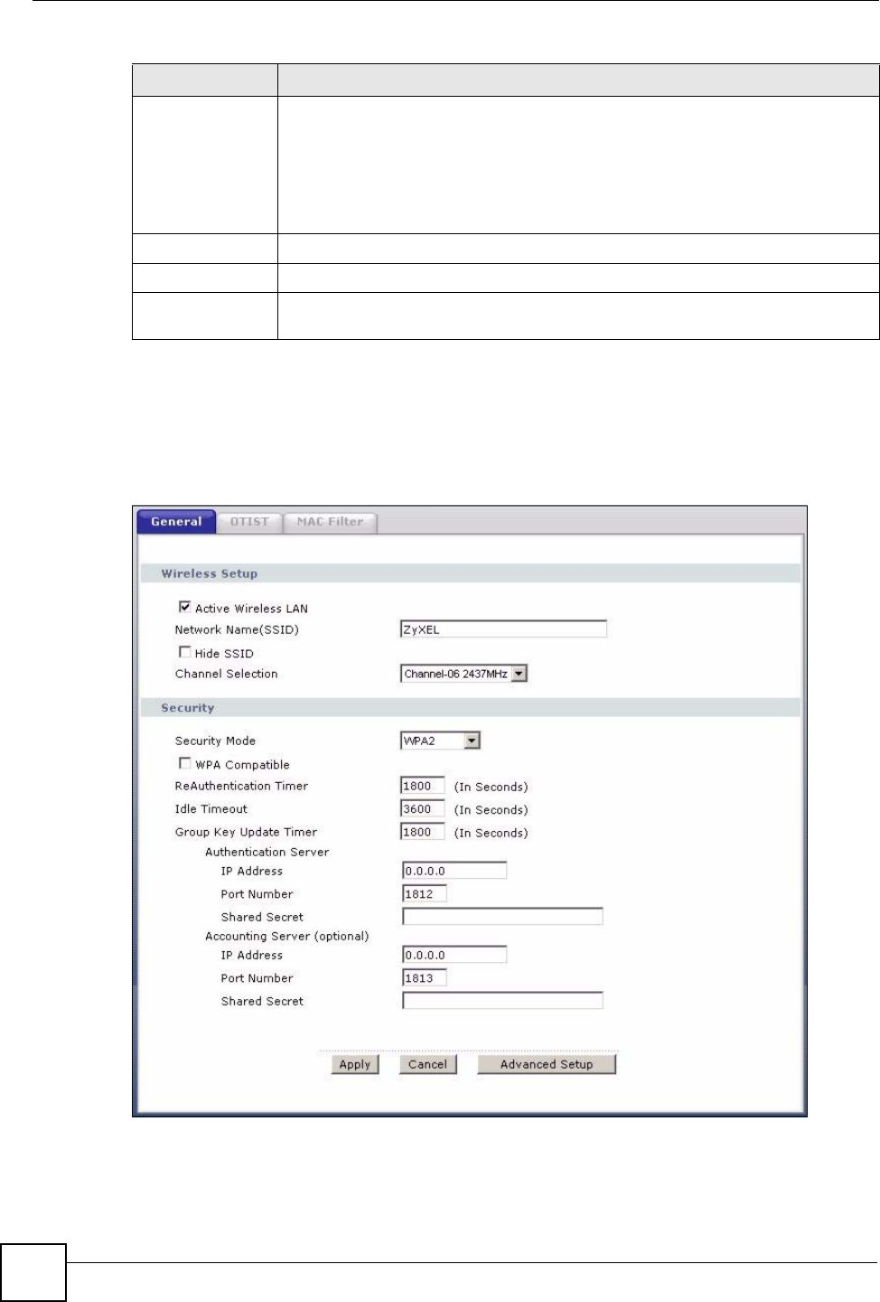Advanced Setup Click Advanced Setup to display the Wireless Advanced Setup screen and edit