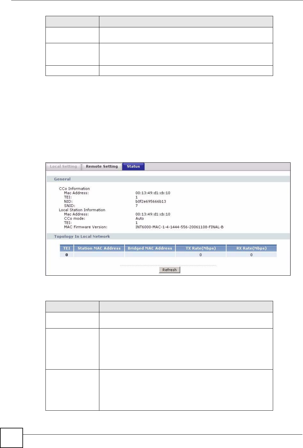 Table 46 Network > Powerline > Status