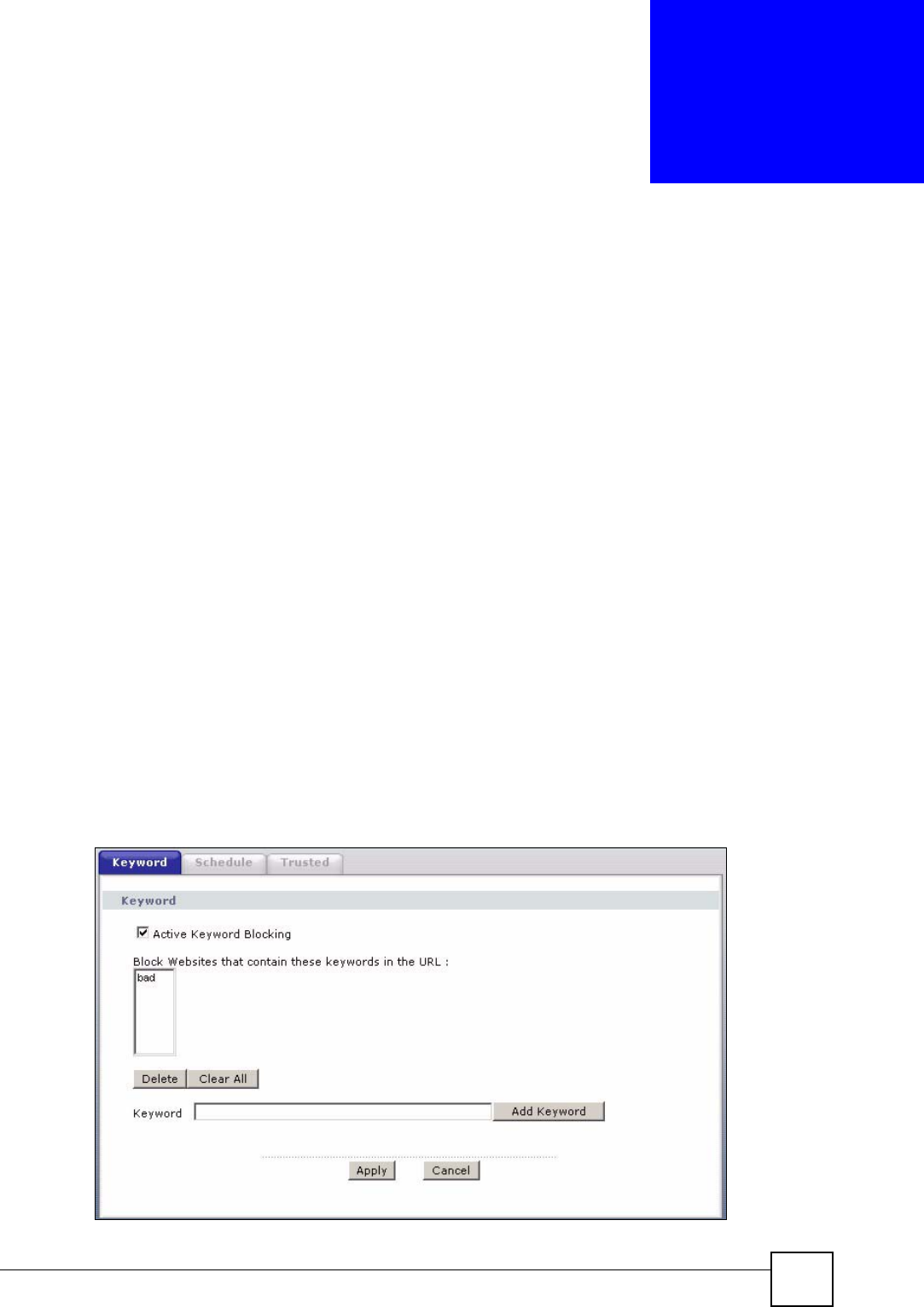 content filtering. You can also specify trusted IP addresses on the LAN for which the P-