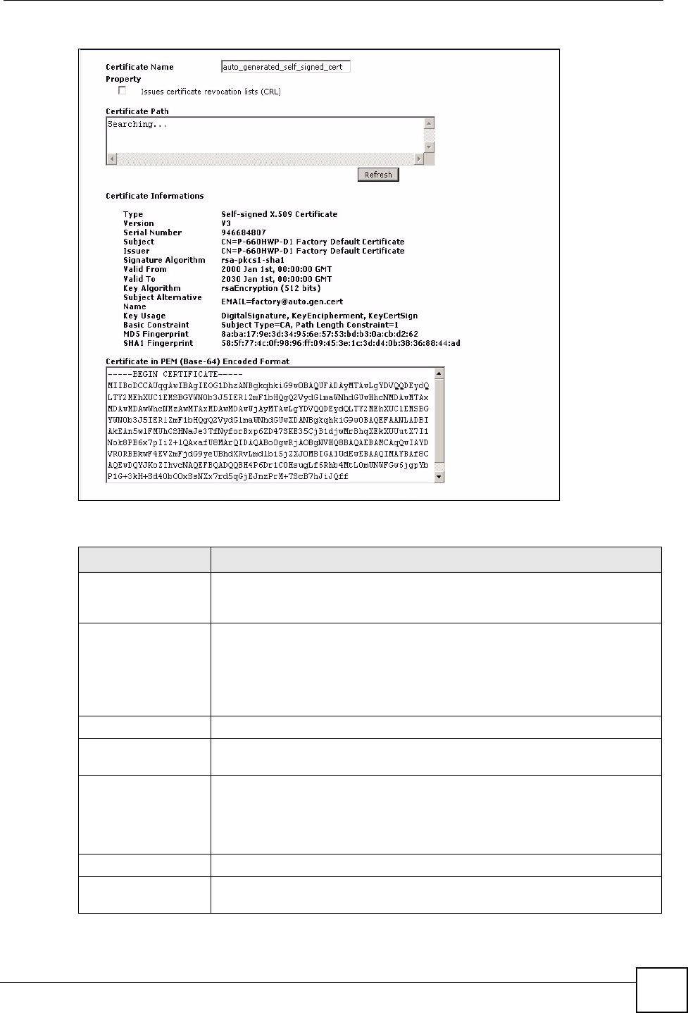 remote host certificates, this field always displays CA-signed. The P-660HWP-