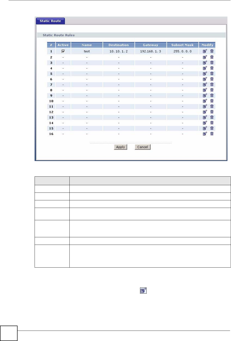Modify Click the Edit icon to go to the screen where you can set up a static route on the P-