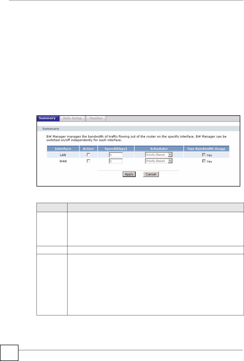 Active Select an interface’s check box to enable bandwidth management on that interface.