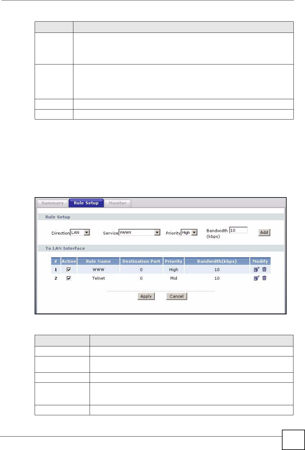 Click Advanced > Bandwidth MGMT > Rule Setup to open the following screen.