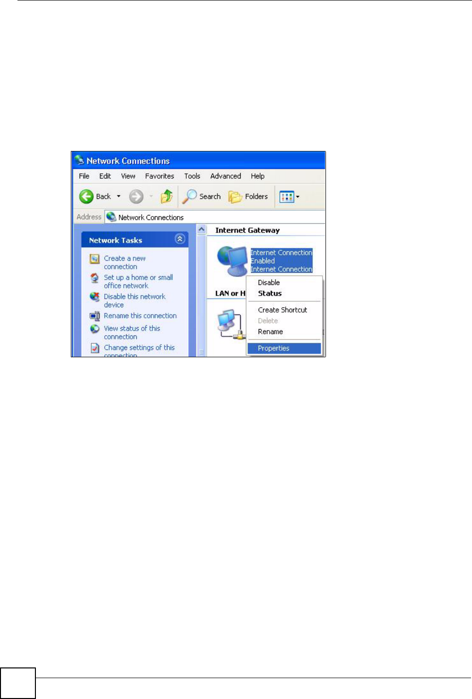 1 Click start and Control Panel. Double-click Network Connections. An icon displays