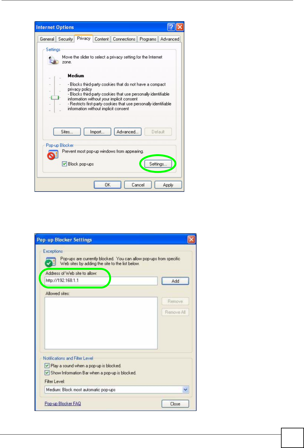 Figure 217 Pop-up Blocker Settings