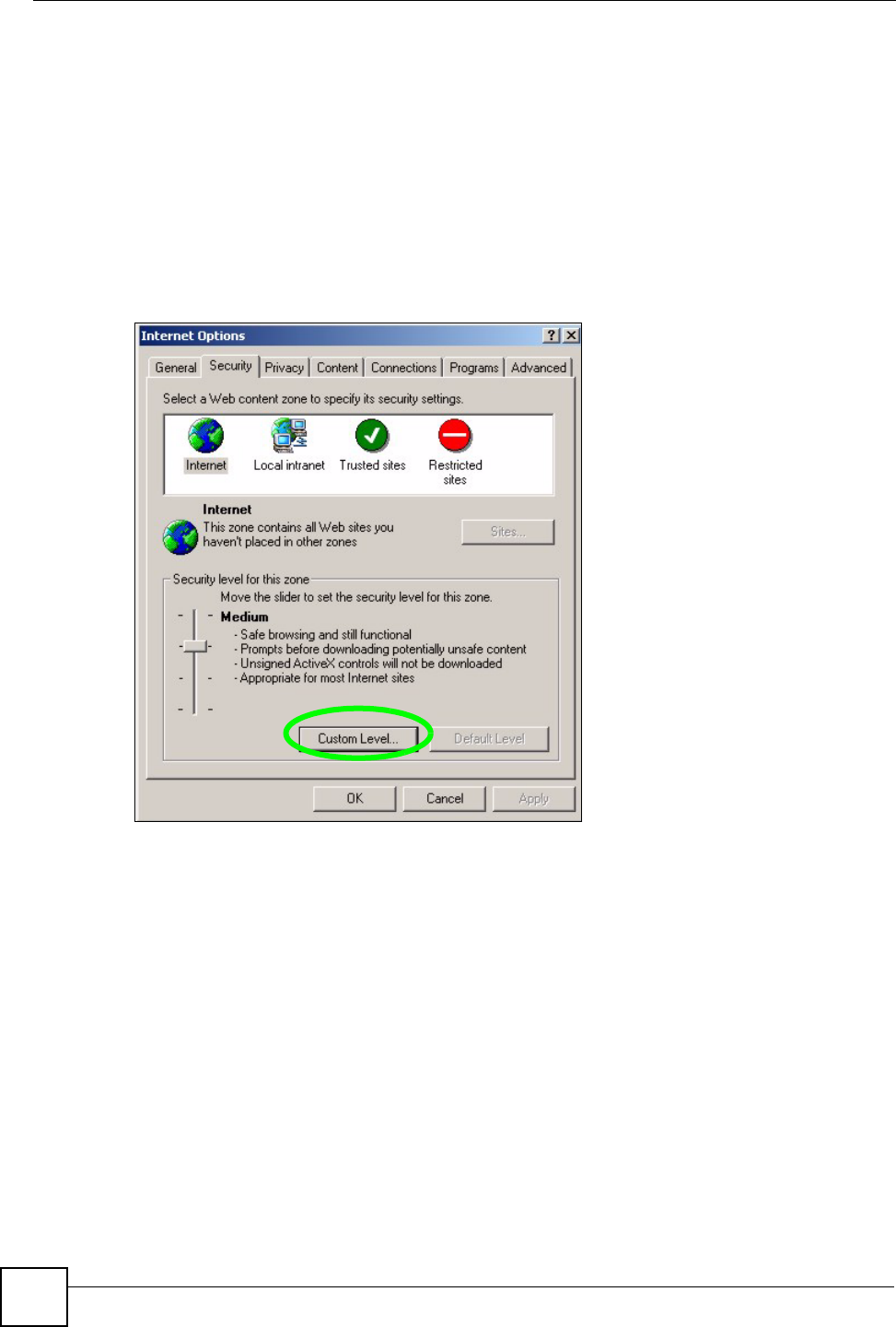 Figure 218 Internet Options: Security