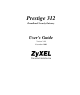 P312 Broadband Security Gateway Prestige 312 Broadband Security Gateway Copyright Copyright © 2000 by ZyXEL Communications Corporation. The contents of this publication may not be reproduced in any part or as a whole, transcribed, stored in a retrieval system, translated into any language, or transmitted in any form or by any means, electronic, mechanical, magnetic, optical, chemical, photocopying, manual, or otherwise, without the prior written permission of ZyXEL Communications Corporation.