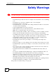 Safety Warnings Safety Warnings 1 For your safety, be sure to read and follow all warning notices and instructions. • Do NOT use this product near water, for example, in a wet basement or near a swimming pool. • Do NOT expose your device to dampness, dust or corrosive liquids. • Do NOT store things on the device. • Do NOT install, use, or service this device during a thunderstorm. There is a remote risk of electric shock from lightning. • Connect ONLY suitable accessories to the device.