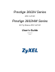 Prestige 2602H/HW Series User’s Guide Preface Congratulations on your purchase of the Prestige 2602HW Series ADSL VoIP IAD with 802.11g Wireless. Note: Register your product online to receive e-mail notices of firmware upgrades and information at www.zyxel.com for global products, or at www.us.zyxel.com for North American products. Your Prestige is easy to install and configure.