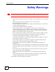 Safety Warnings P-2602H(W)(L)-DxA User’s Guide 7