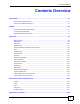 Contents Overview Contents Overview Introduction ............................................................................................................................ 37 Introducing the ZyXEL Device ................................................................................................... 39 Introducing the Web Configurator .............................................................................................. 47 Wizard ...............................................................