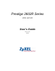 Prestige 2602R Series User’s Guide Copyright Copyright © 2005 by ZyXEL Communications Corporation. The contents of this publication may not be reproduced in any part or as a whole, transcribed, stored in a retrieval system, translated into any language, or transmitted in any form or by any means, electronic, mechanical, magnetic, optical, chemical, photocopying, manual, or otherwise, without the prior written permission of ZyXEL Communications Corporation. Published by ZyXEL Communications Corporation.