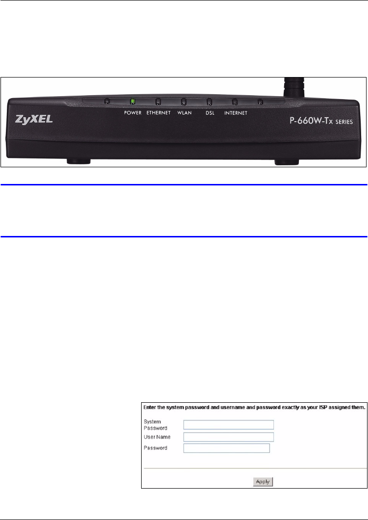 ETHERNET light turns on if your computer is properly connected to the P-660W-Tx v2