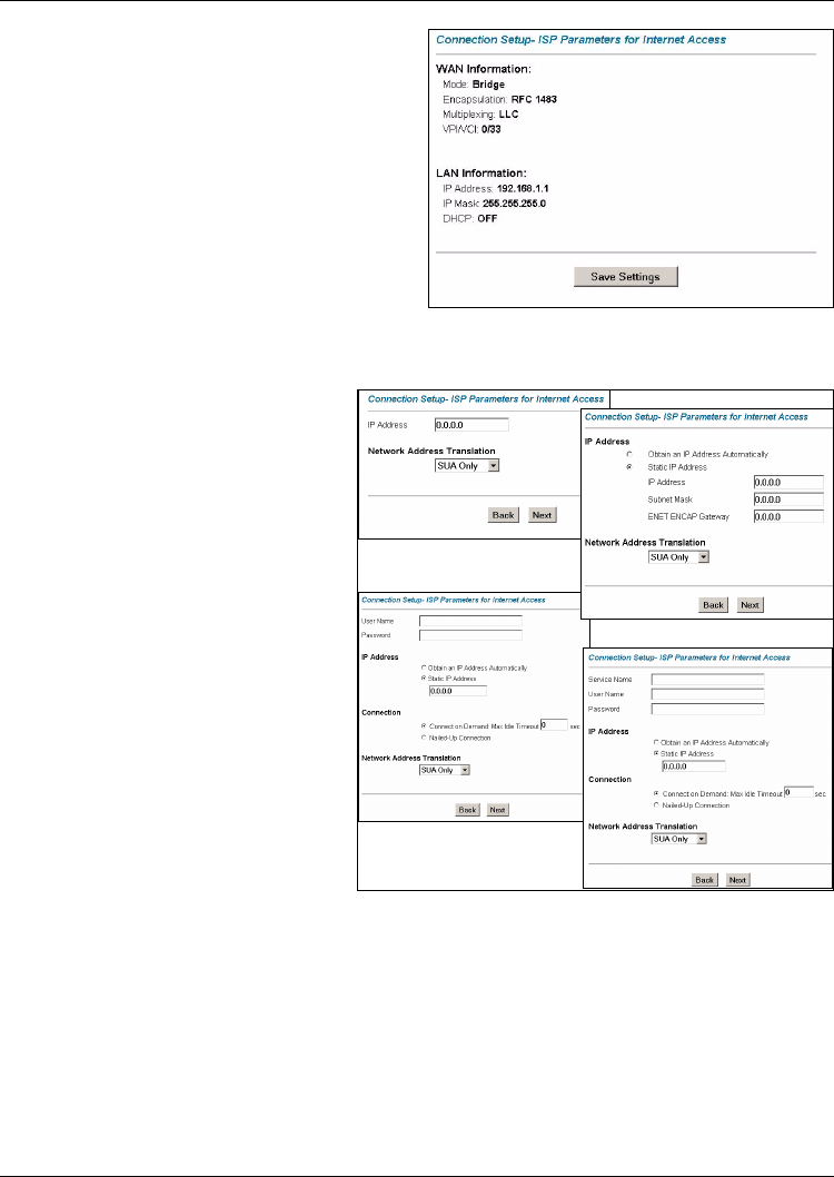 • PPPoE, PPPoA, ENET, RFC 1483: Select SUA Only for shared Internet access with a sin-