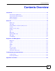Contents Overview Contents Overview Introduction ............................................................................................................................ 23 Introducing the ZyXEL Device ................................................................................................... 25 Introducing the Web Configurator .............................................................................................. 31 Initial Configuration .................................................