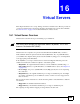overview of virtual servers, and, then, it introduces the virtual server screens and commands.