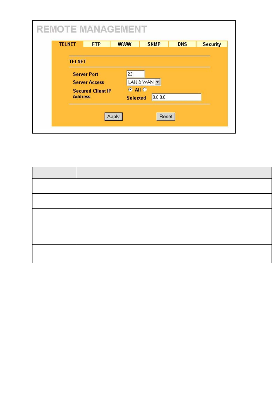 Server Access Select the interface(s) through which a computer may access the Prestige using this