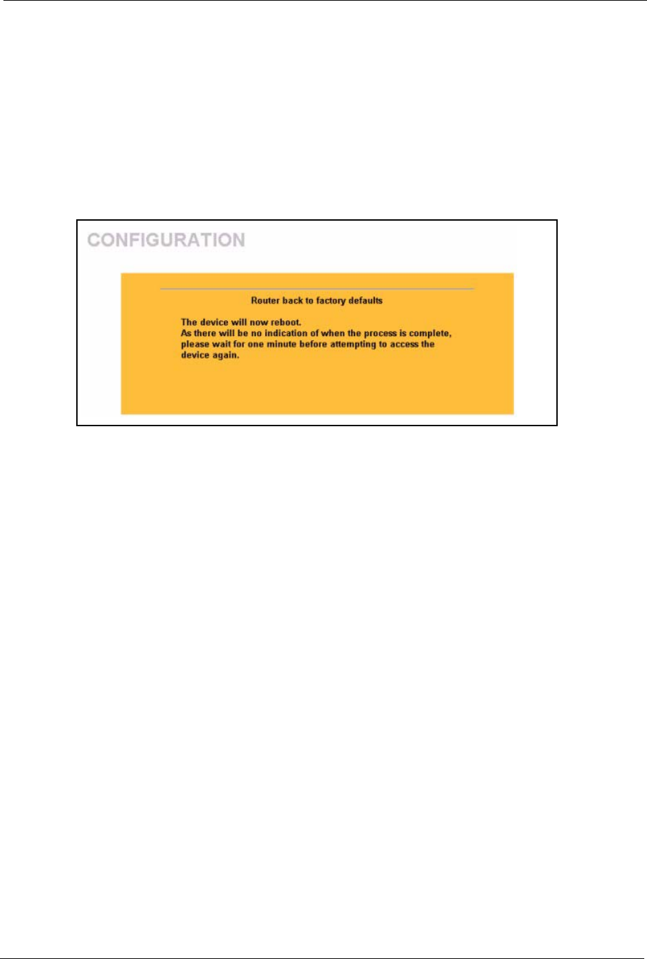 returns the Prestige to its factory defaults as shown on the screen. The following warning