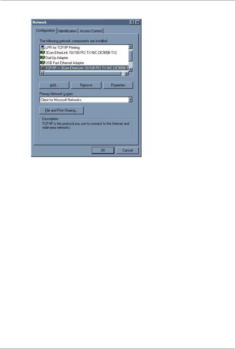 network adapter, the TCP/IP protocol and Client for Microsoft Networks.