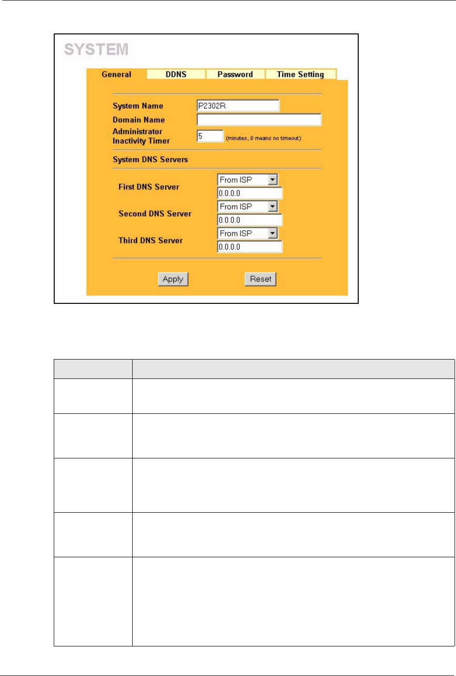 Prestige's WAN IP address). The field to the right displays the (read-only) DNS