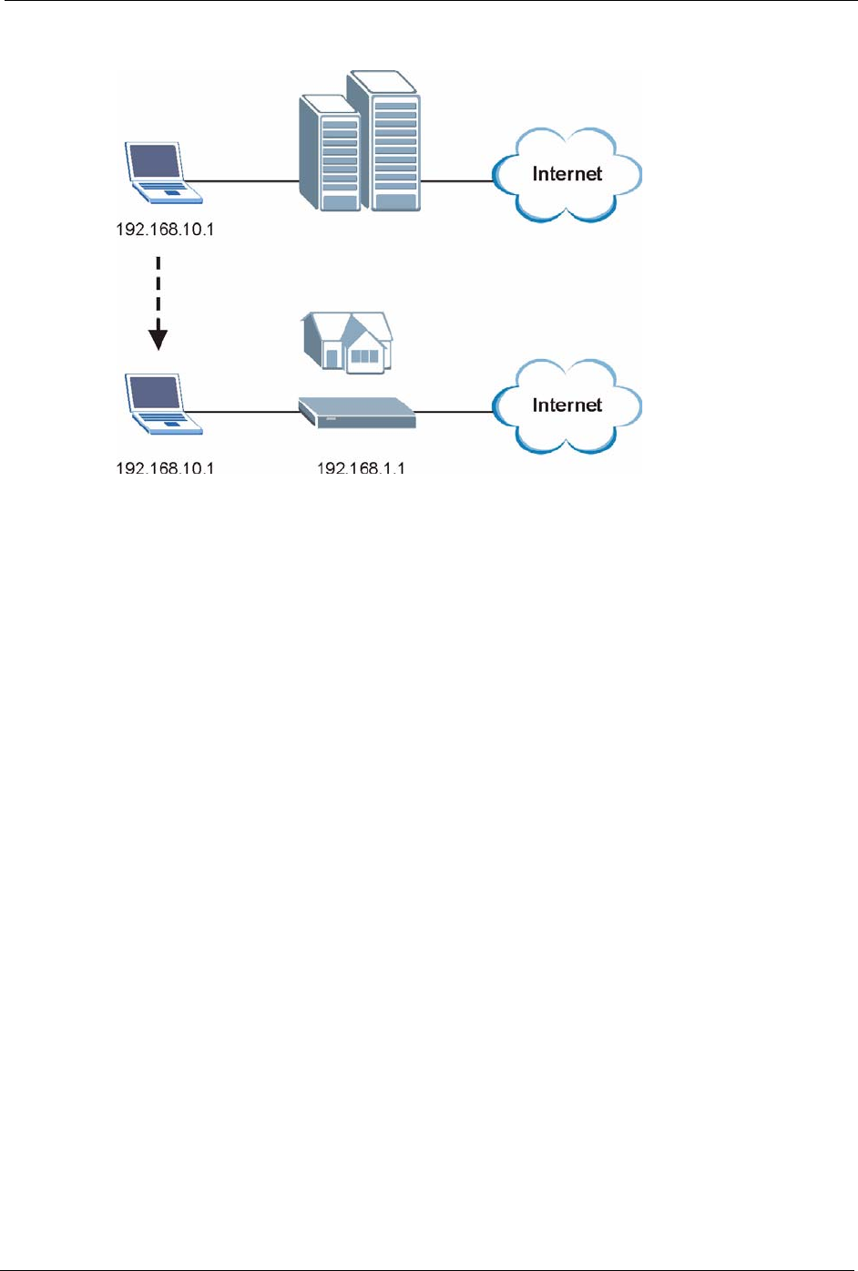 sends packets to its default gateway (which is not the Prestige) by looking at the MAC
