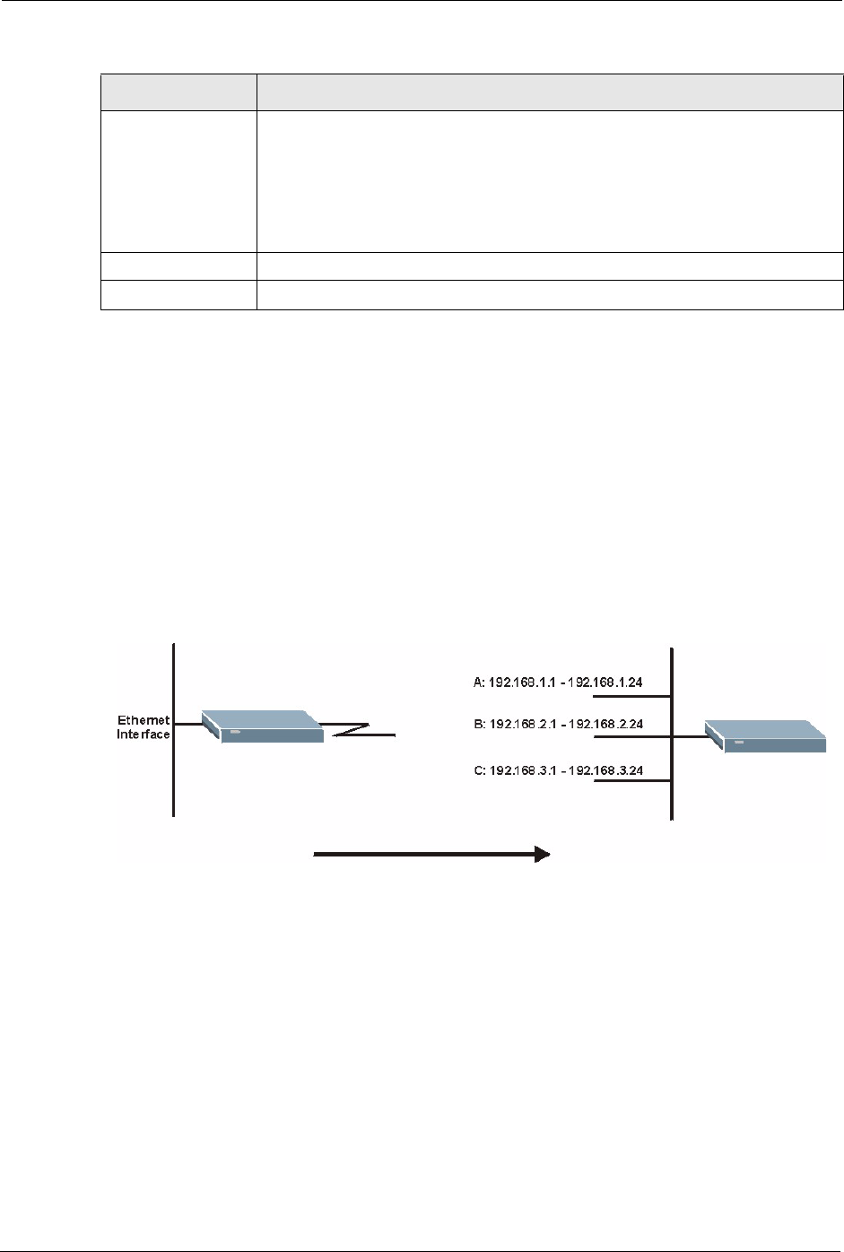 physical Ethernet interface with the Prestige itself as the gateway for each LAN network.