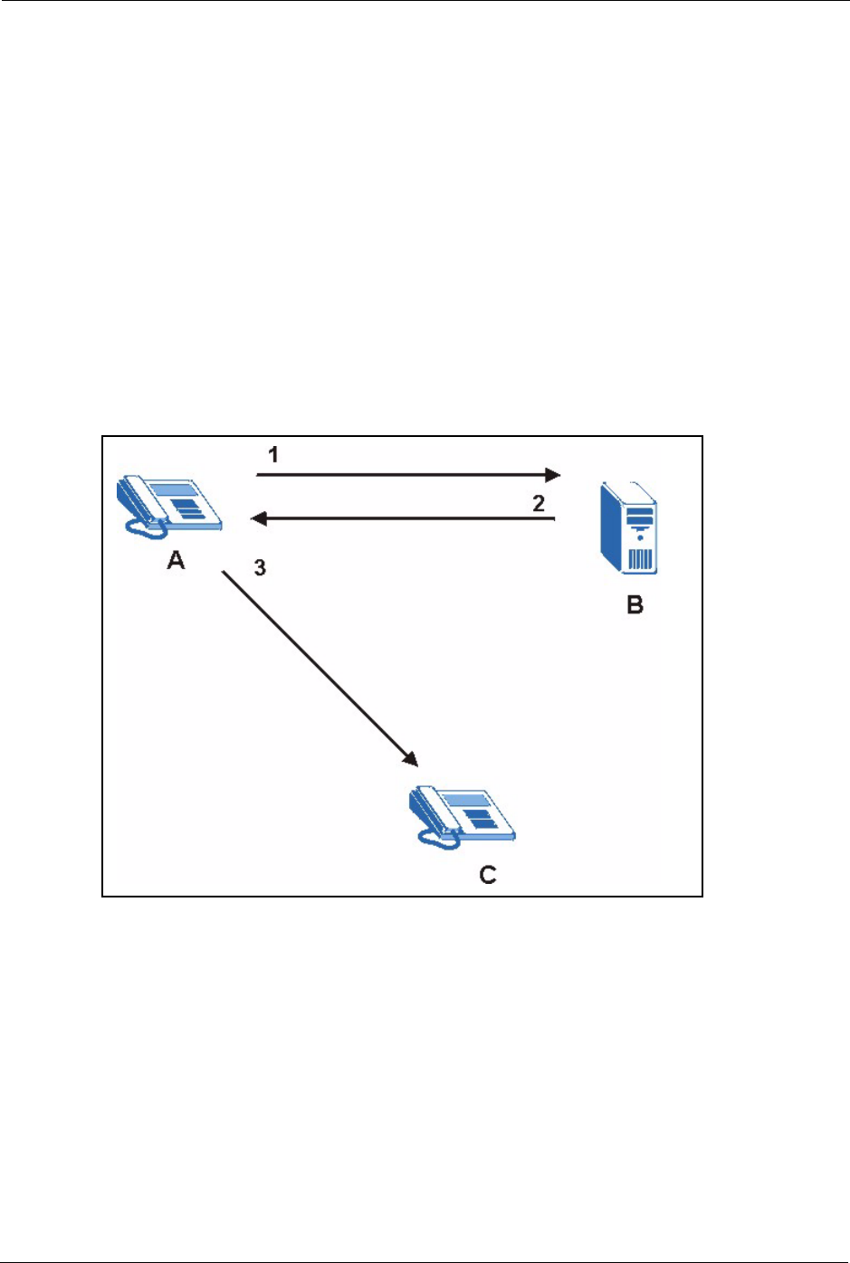 2 The SIP redirect server sends the invitation back to A with C’s IP address (or domain