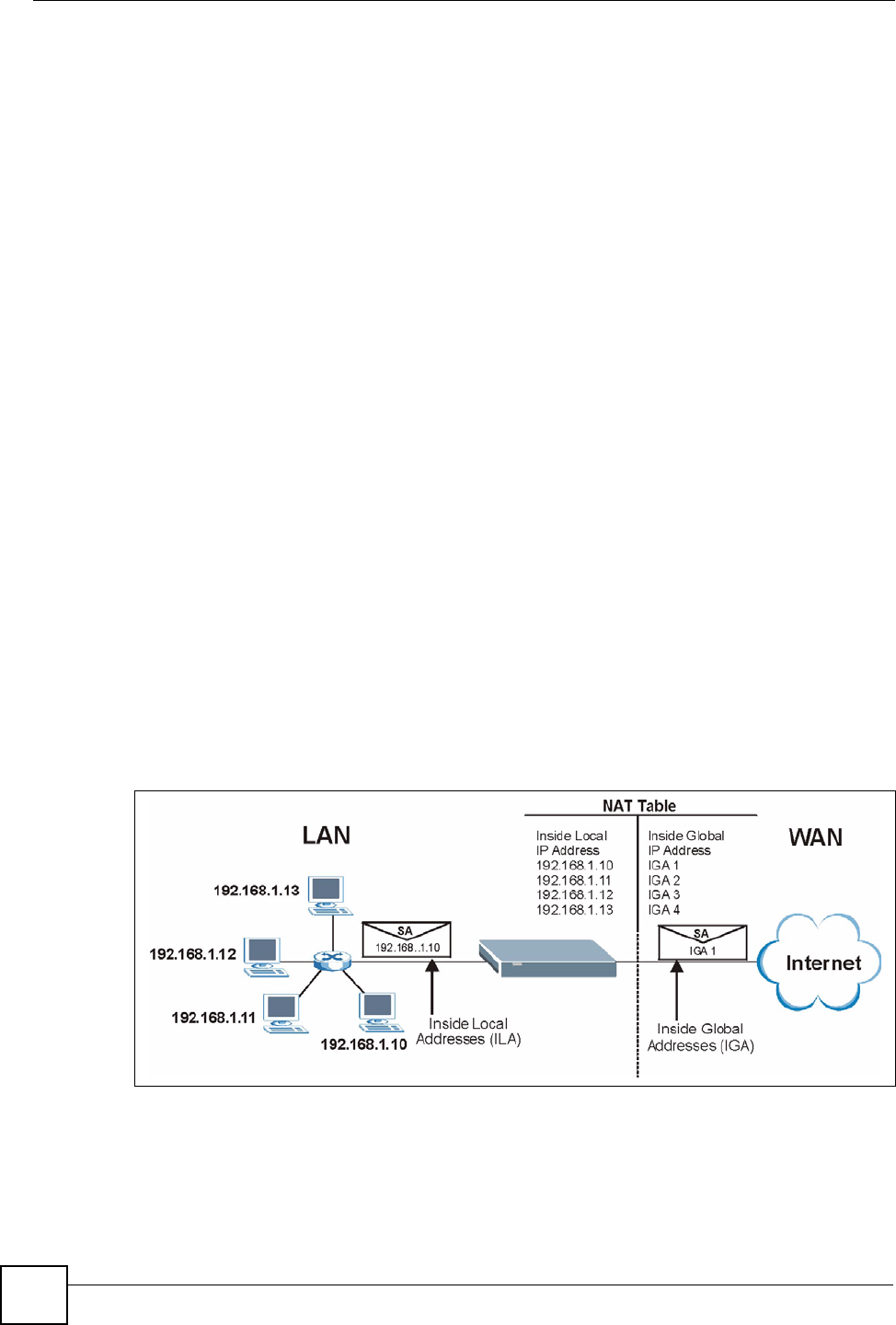 and then forwards it to the Internet. The P-660HWP-Dx keeps track of the original addresses