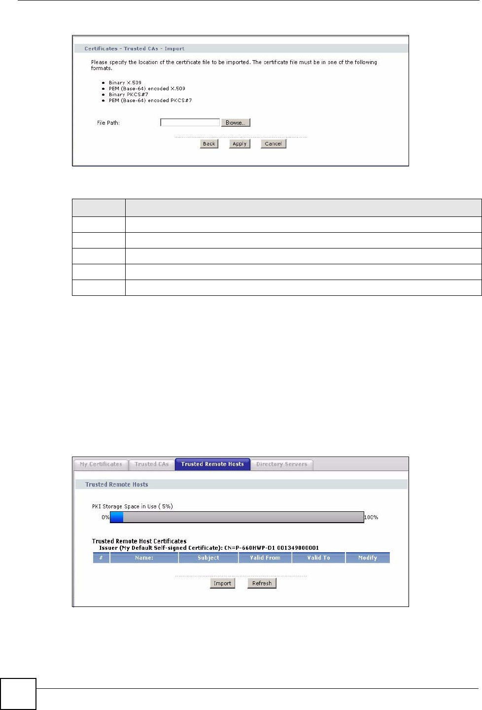 the Trusted CAs screen since the P-660HWP-Dx automatically accepts any valid certificate