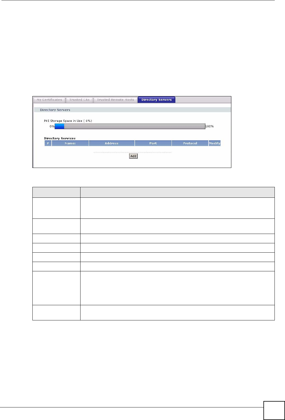 Click Security > Certificates > Directory Servers to open the Directory Servers screen.