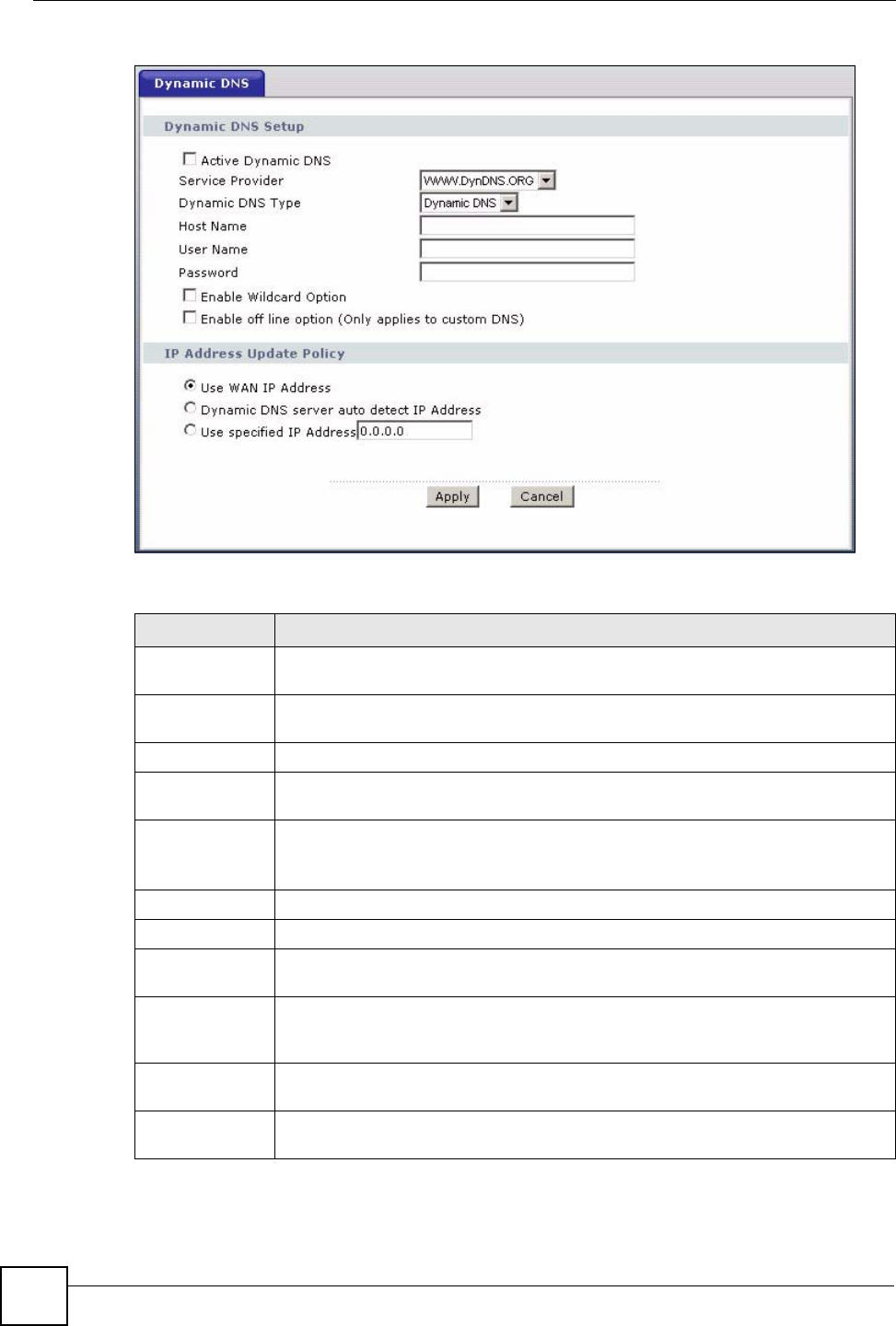 Host Name Type the domain name assigned to your P-660HWP-Dx by your Dynamic DNS
