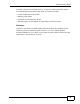About This User's Guide • Web Configurator Online Help Click the help icon in any screen for help in configuring that screen and supplementary information. Documentation Feedback Send your comments, questions or suggestions to: techwriters@zyxel.com.tw Thank you! The Technical Writing Team, ZyXEL Communications Corp., 6 Innovation Road II, Science-Based Industrial Park, Hsinchu, 30099, Taiwan. Need More Help? More help is available at www.zyxel.com.