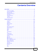 Contents Overview Contents Overview User’s Guide ........................................................................................................................... 31 Introducing the ZyWALL ............................................................................................................ 33 Features and Applications ......................................................................................................... 43 Web Configurator ................................................